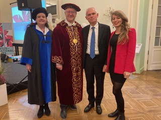 In seguito si sono recati assieme nella sede storica del’Università di Bonn, fondata nel 1818 da Federico Gugliemo III di Prussia. Dopo il saluto istituzionale al Rettore Prof. Dr. Dr. h. c. Michael Hoch e alla Pro-Rettrice Prof. Dr. Birgit Ulrike Münch hanno partecipato alla cerimonia di consegna dei prestigiosi premi accademici “Staatspreis” e “DAAD-Preis” che vengono conferiti ai migliori laureati dell’anno.